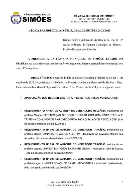 ATO DA PRESIDÊNCIA N° 07/2025